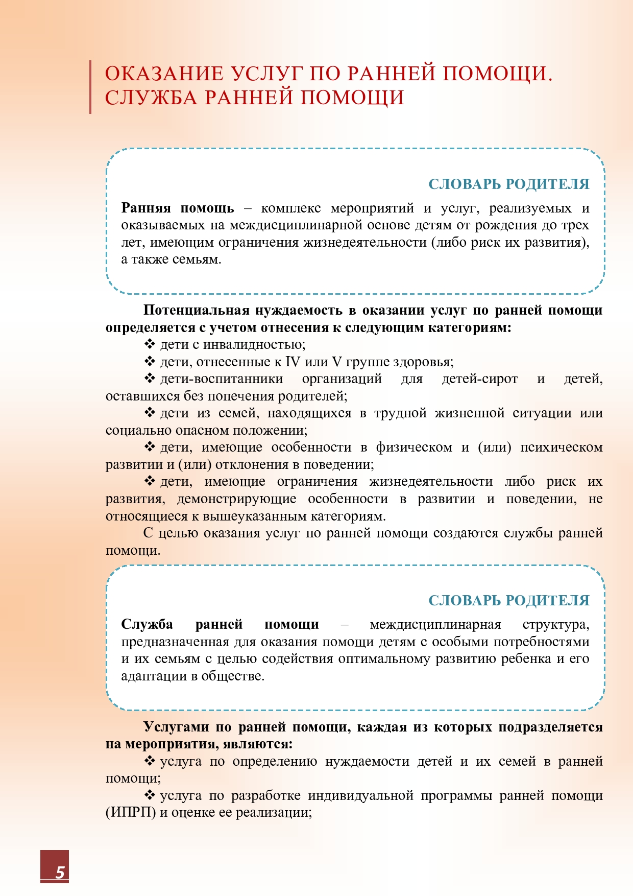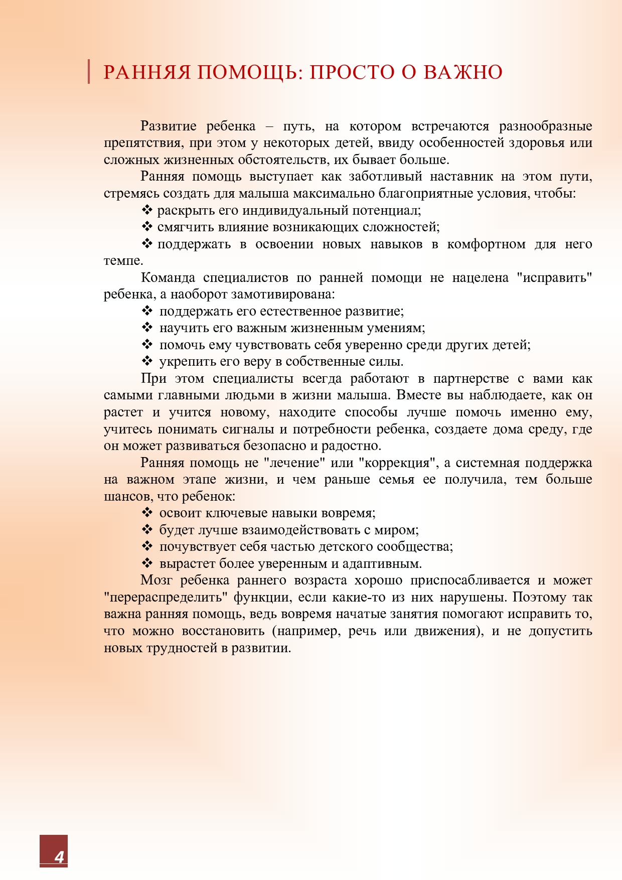 Буклет - РАННЯЯ ПОМОЩЬ: бесплатная помощь семьям с детьми в возрасте от рождения до трех лет